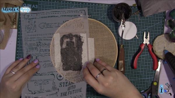 Luego hacemos un stencil con una pasta de textura, en mi caso una de antracita que me encanta.
