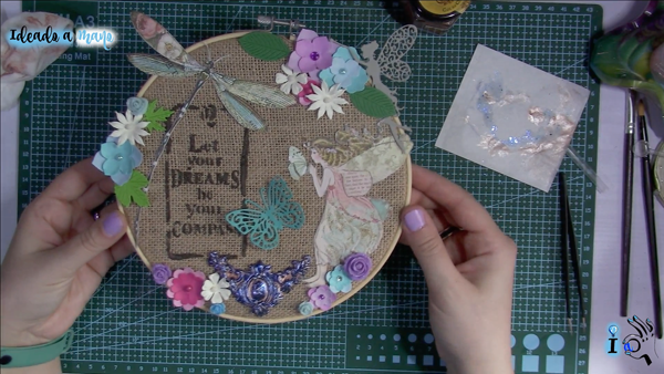 La pegamos en la parte inferior del bastidor y listo! no os volvais locos pegando cosas que yo lo hice un poquito…