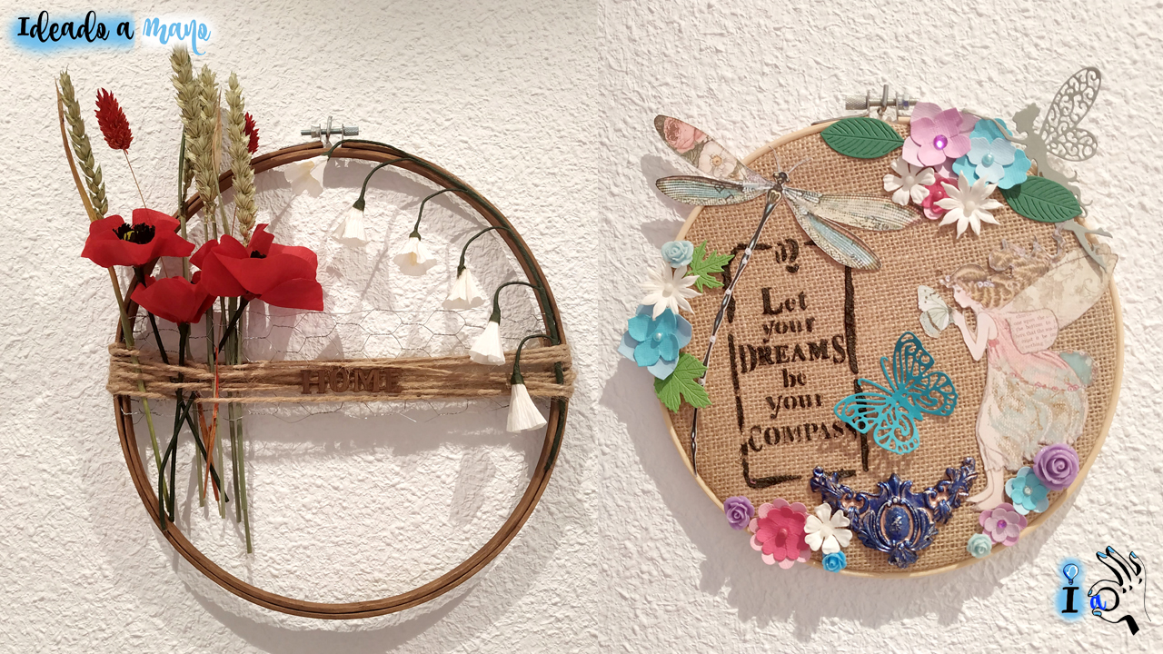 Hoy vengo un día antes de lo normal porque vengo con una colaboración muy especial con mis amigas de Amparo Lacruz DIY, Manualidades con Yoli y Crea2conPasión. Y es que hemos decidido ponernos de acuerdo para adornar bastidores para decorar nuestras casas. Y estas son mis propuestas: