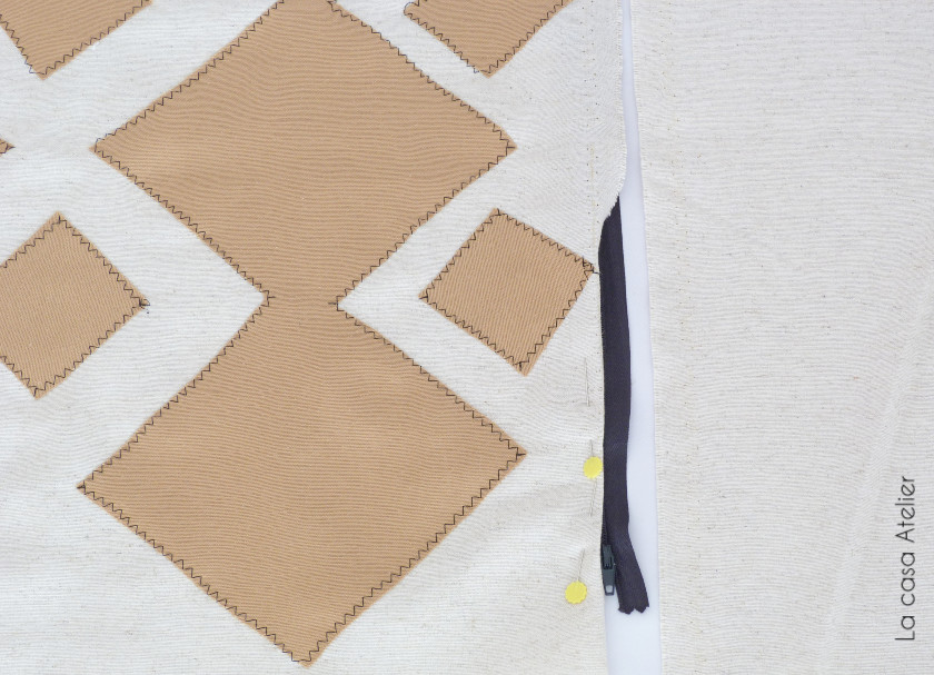 Para construir el cojín los dos rectángulos se unen por 3 lados y en el cuarto se cose una cremallera.