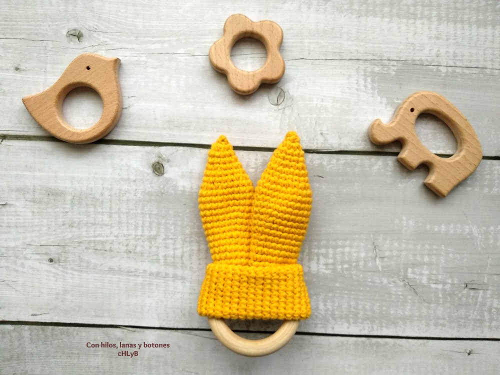 El mordedor de orejitas es sencillo y resultón, ¿verdad? Es una monada. Las orejitas se hacen a ganchillo y luego se enganchan en el aro de madera. Marta Procel, de Creativa Atelier, tiene un tutorial donde explica de maravilla cómo hacerlo.