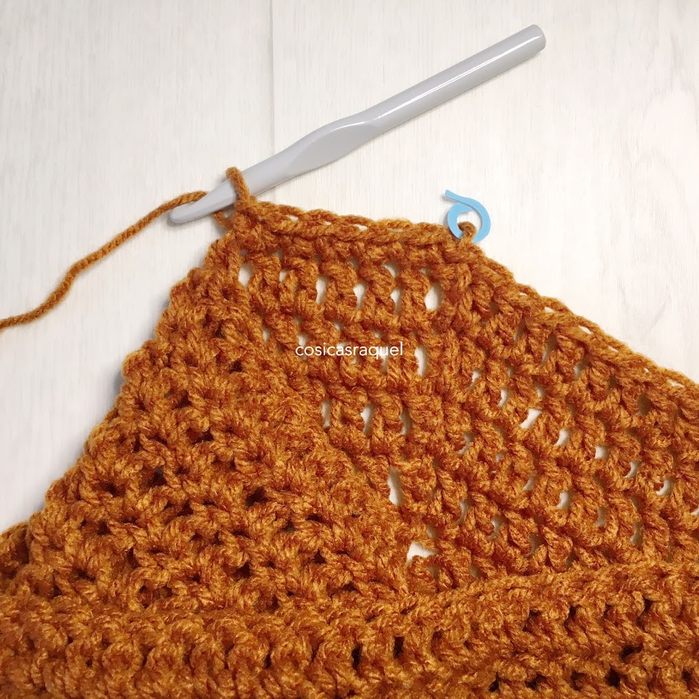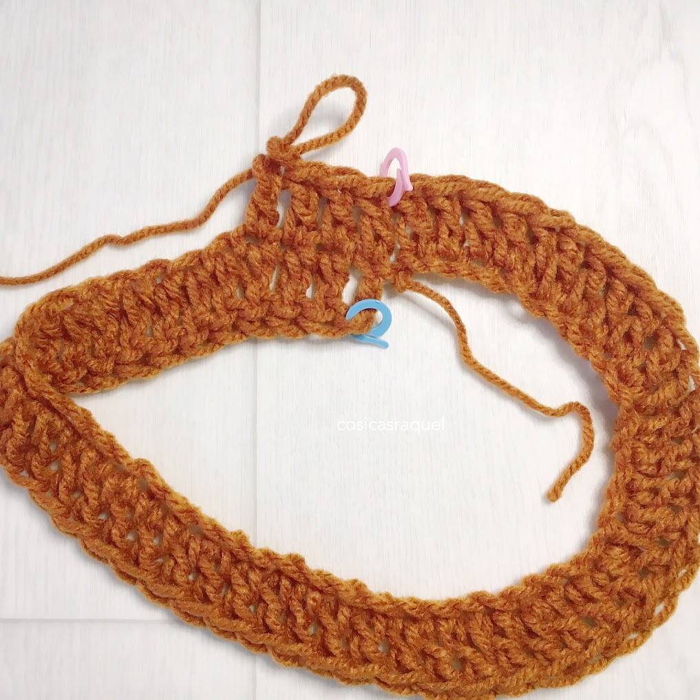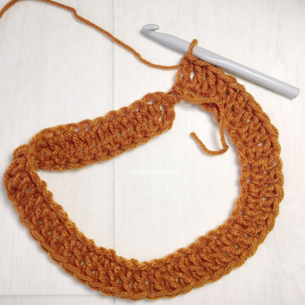 Yo he tejido hasta más o menos unos 30cm , 10 vueltas.
