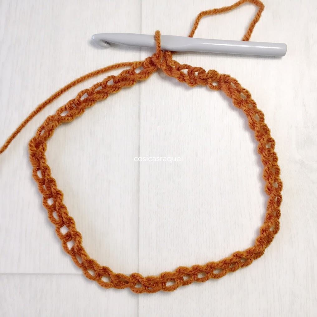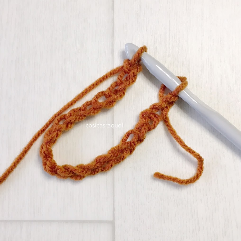 [TIP para que te queden las cadenetas rectas desde el principio, cuando hayas hecho unas 5 mete el ganchillo por el primer punto y sigue tejiendo con ese primer punto en el ganchillo, luego solo tendrás que pasar la última cadeneta para hacer el pr.]