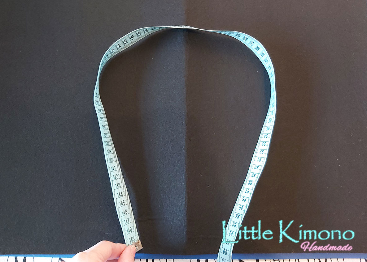 1. Lo primero que hice fue medir de «tirante» a «tirante» y luego alrededor del cuello hasta el escote, ésto más o menos para darle forma al cuello y lo dibujé en el fieltro.
