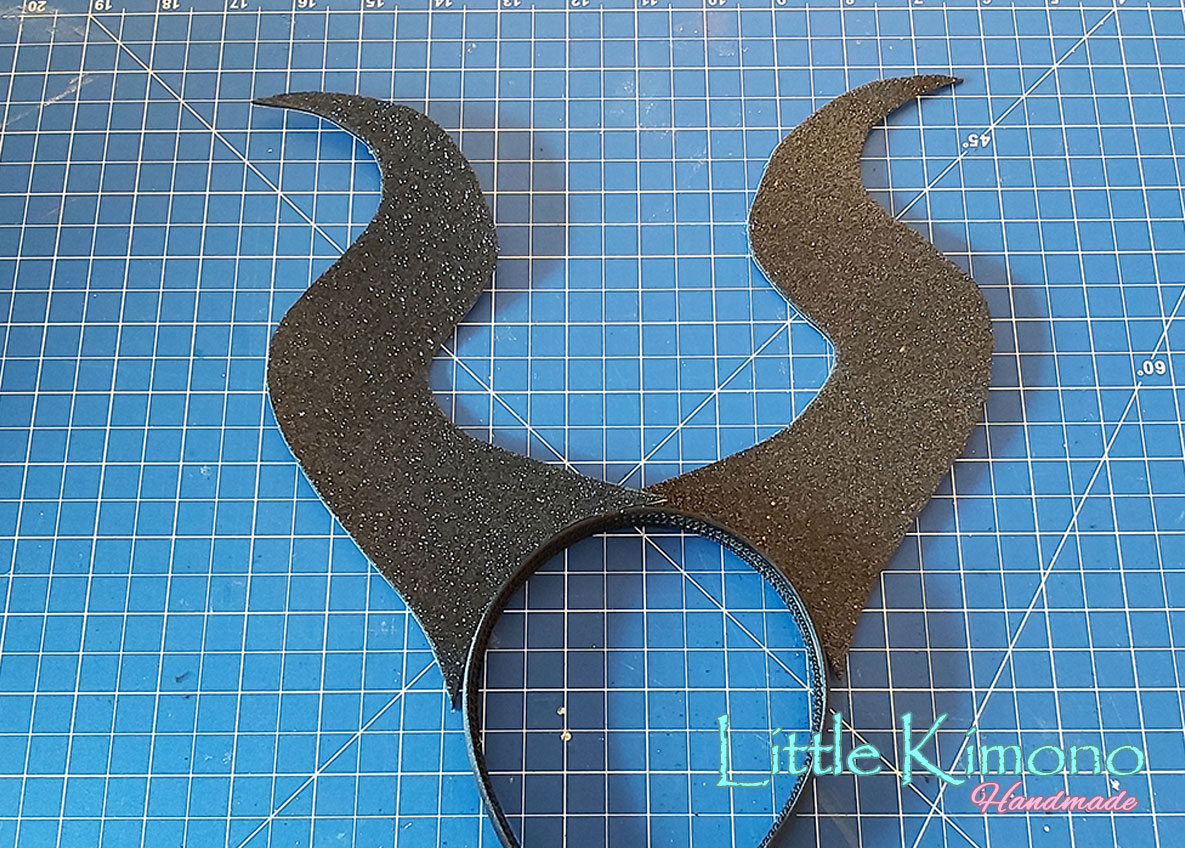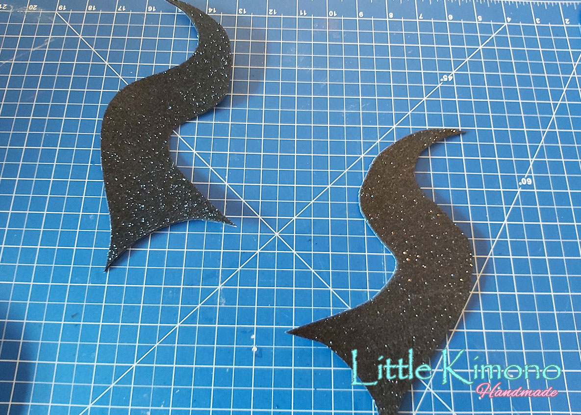 El complemento final, para esto usamos una diadema negra y Goma Eva Glitter Negra. Imprimimos y cortamos la plantilla y pegamos a una diadema.