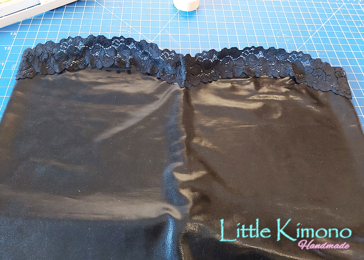 4. En la parte superior hacemos un dobladillo y pegamos con pegamento textil. Podemos dejarlo así o decorar con algún encaje para darle más vidilla^^