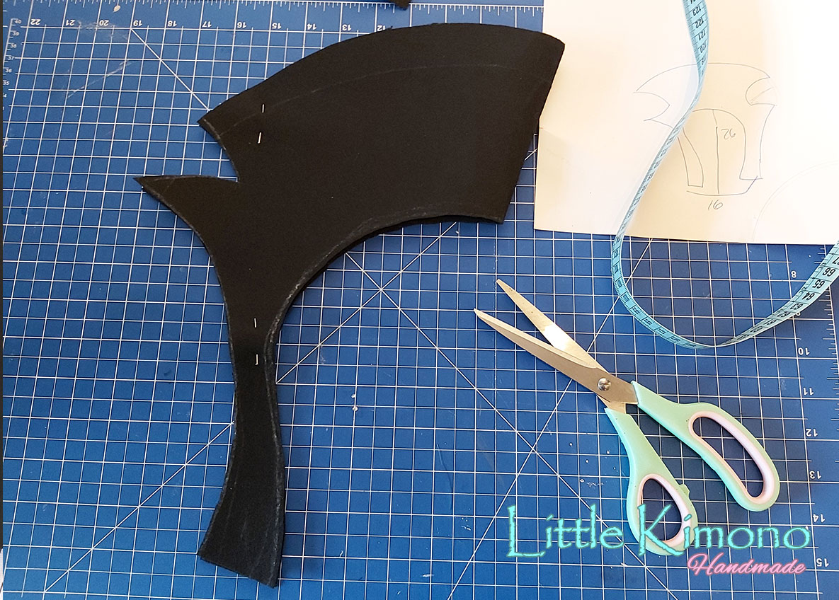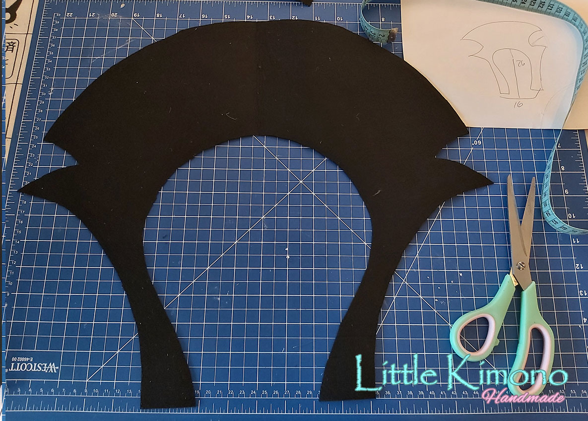 Con dibujar un lado y doblar el fieltro por la mitad ya podemos cortar y nos quedará simétrico. Cortamos 2 piezas iguales.