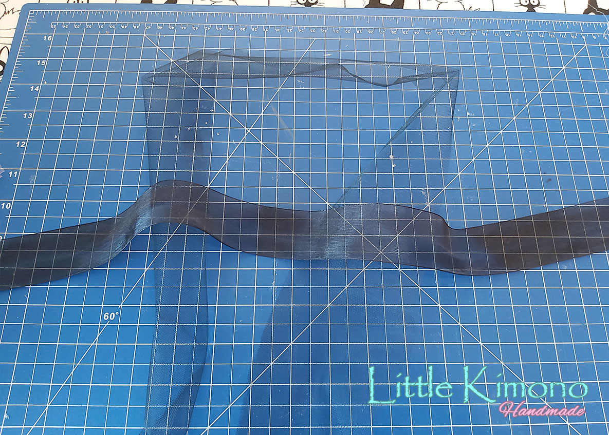 3. Doblamos la tela por la mitad y cosemos con un hilo en la misma tonalidad y como la tela es finita he usado una aguja del 70.