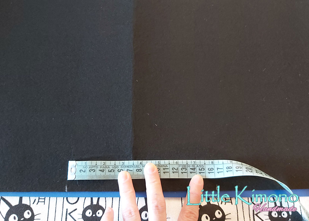 2. Vamos a medir el contorno del pecho a la altura del escote y pasamos esa medida a la tela para cortar un rectángulo con esa medida.