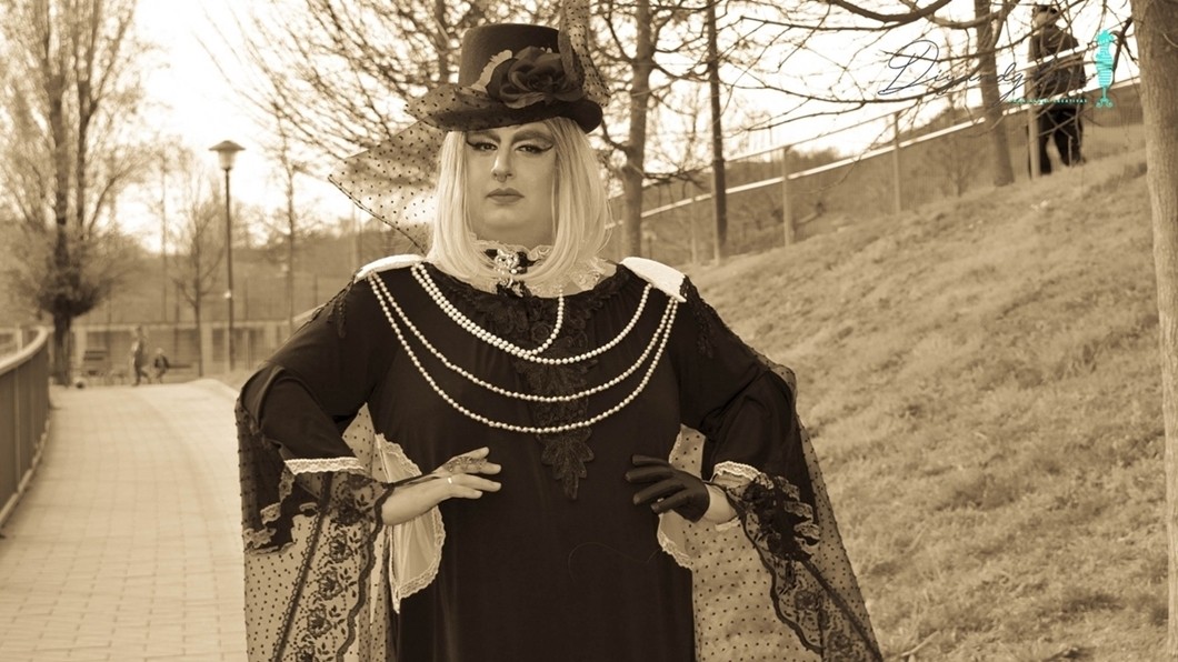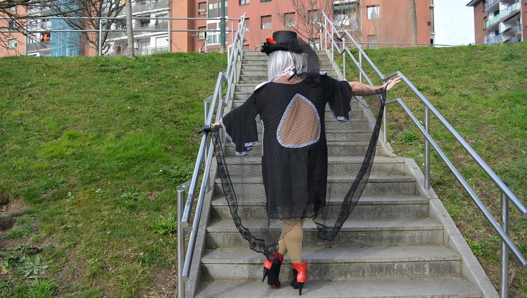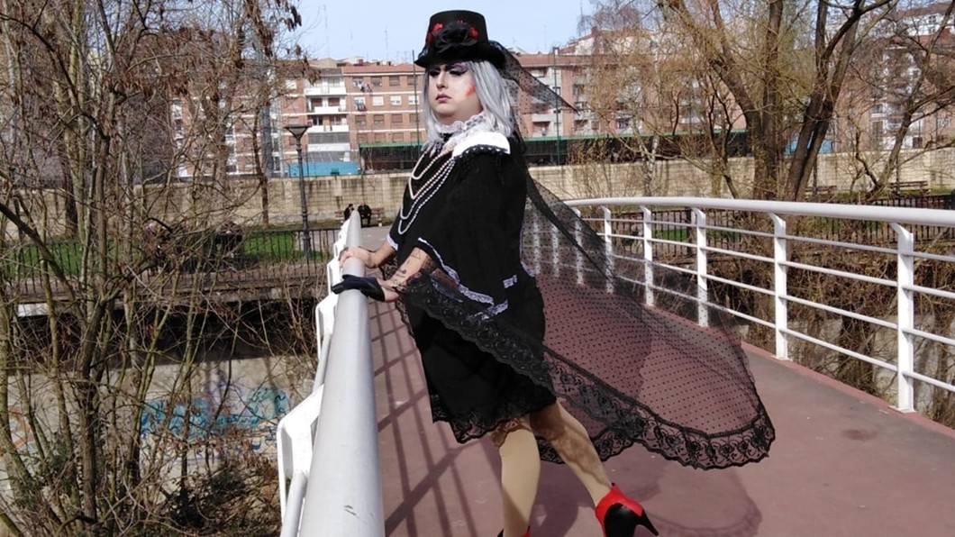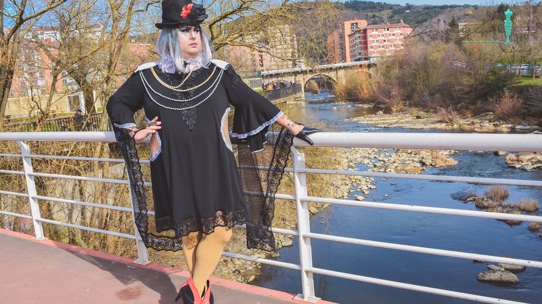 En realidad el vestido lo he hecho para sus espectáculos de baile. Pero añadiéndole la peluca el sombrero y un maquillaje muy llamativo, lo he convertido en un disfraz.
