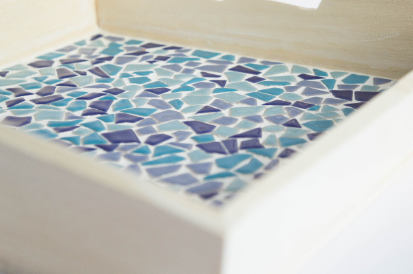 En este post voy a ensarte el DIY para decorar una bandeja de madera haciendo un mosaico con teselas en tonos azules que queda absolutamente espectacular y que no es nada difícil de conseguir.