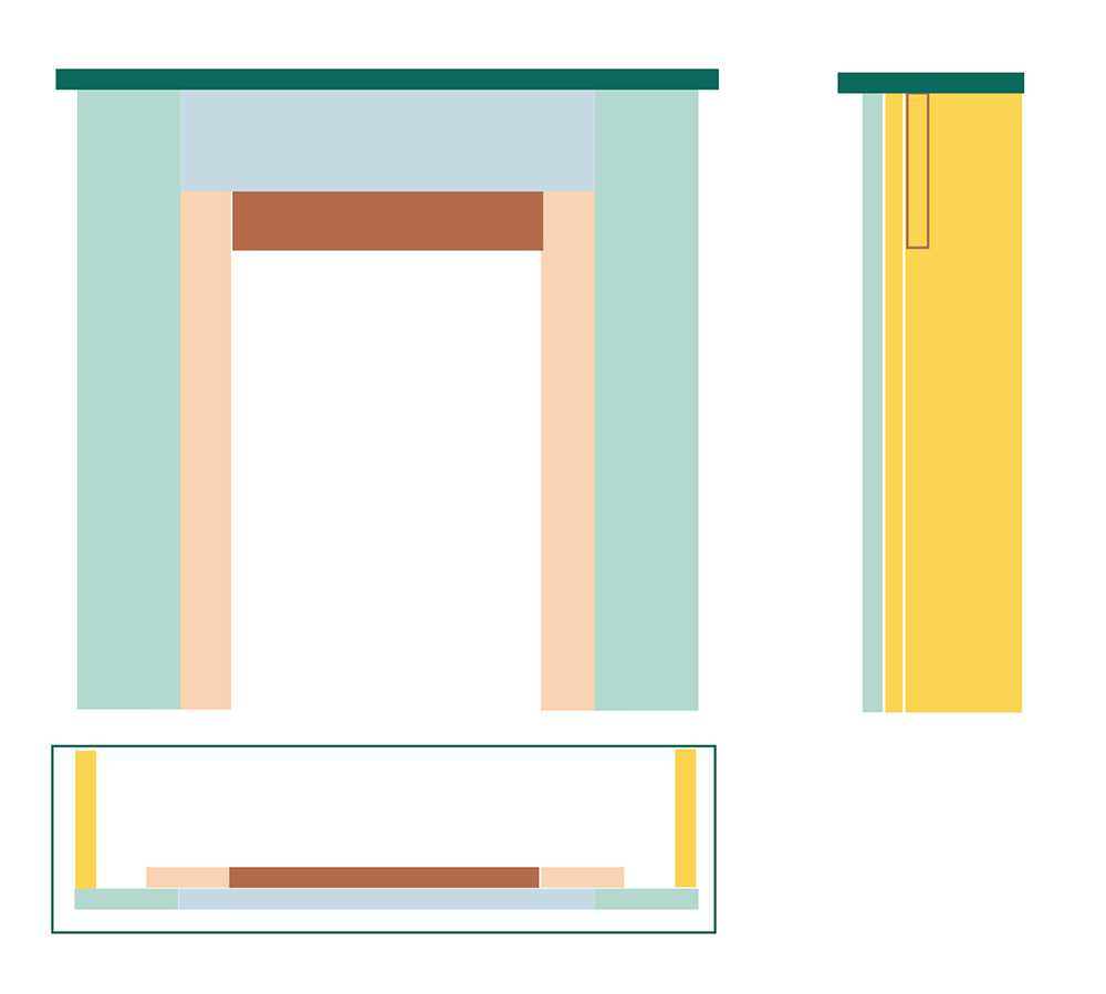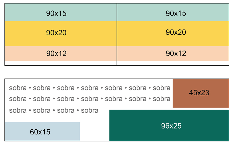 El siguiente esquema, está pensado para un tablero estándar de pino de 180x50cm. En nuestro caso, solemos hacer los proyectos sencillos en esta madera porque es muy fácil de cortar en casa con nuestra herramienta y es barata, pero en este caso, al tener que comprar dos tableros, el proyecto de chimenea se nos subía por encima de los 45€ ¡Y la idea era hacer algo vistoso pero lowcost!