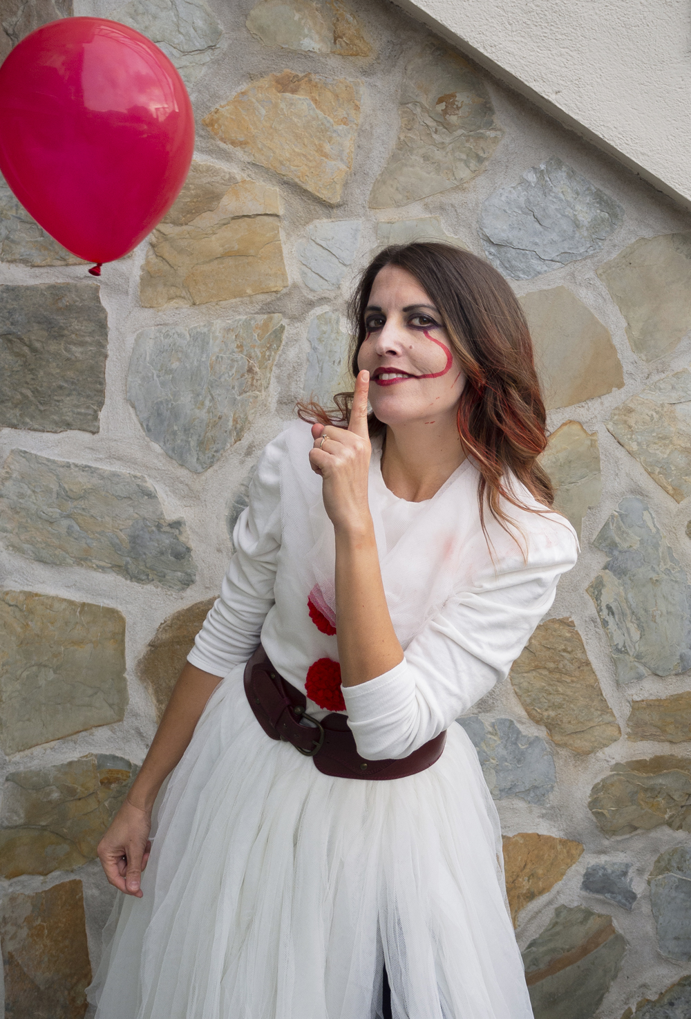 Aquí ya tenéis disfraces perfectos para Halloween, pero hoy queríamos enseñaros el disfraz de Pennywise facilón que hemos preparado reciclando la falda de tul blanco que usamos en carnavales y que os enseñamos a hacer aquí ¿Os acordáis?
