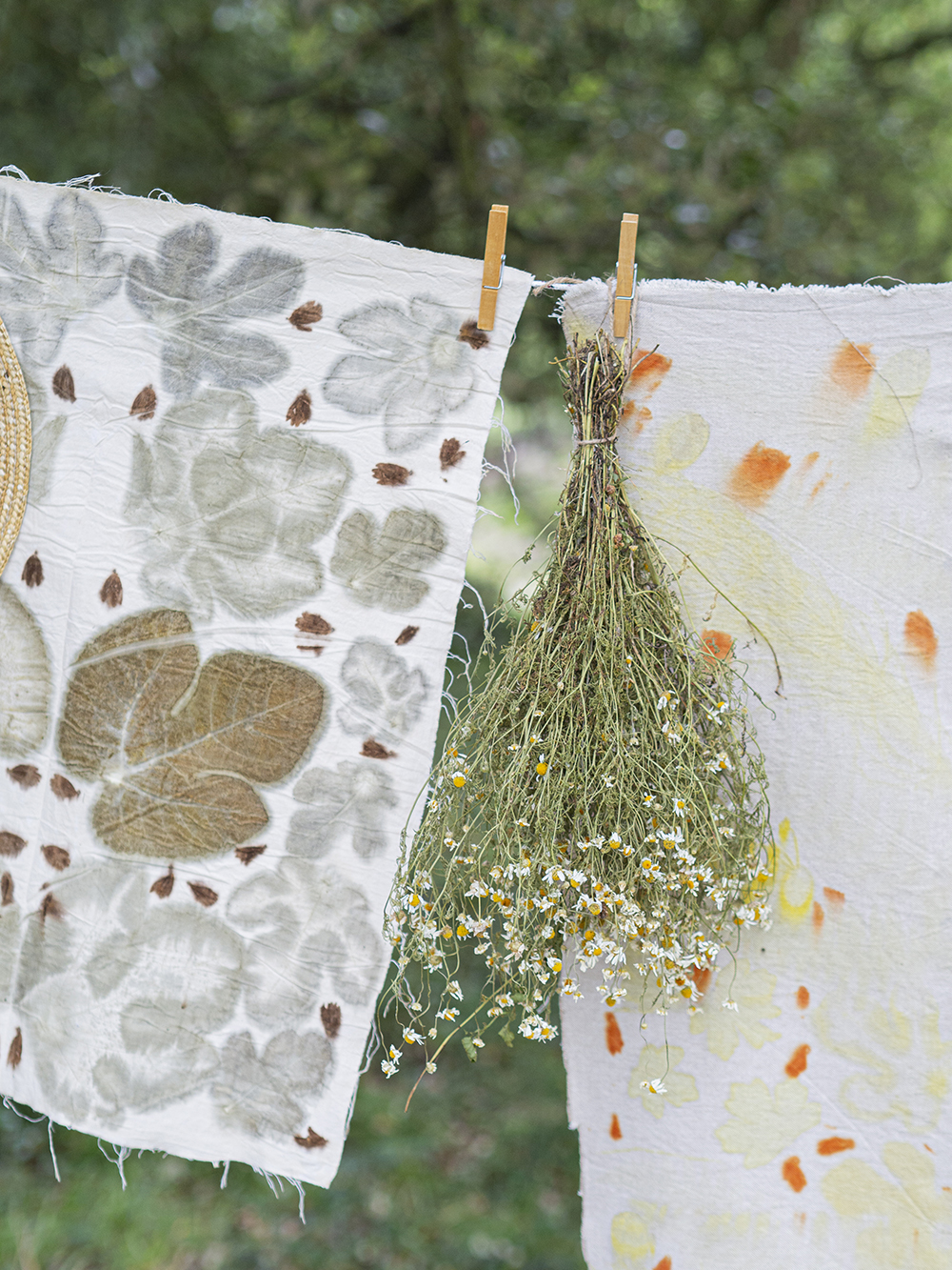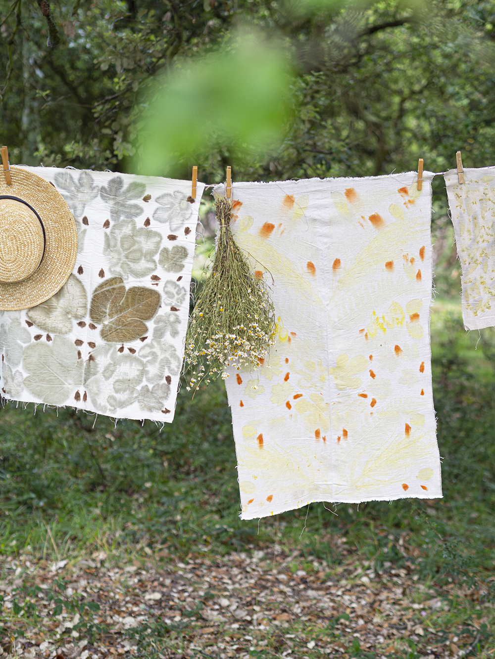 Con la tela mordentada y el paso de fijación posterior, nos aseguraremos de que los tintes naturales queden fijados, y así, podremos lavar la tela sin problema. ¡Ya tenemos la tela lista para empezar con la estampación botánica!