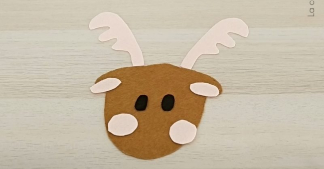 Imprime la plantilla y recorta las piezas según los colores. Yo he separado cabeza y cuernos y luego he aplicado trozos mas pequeños en contraste para crear orejas, ojos y mejillas.