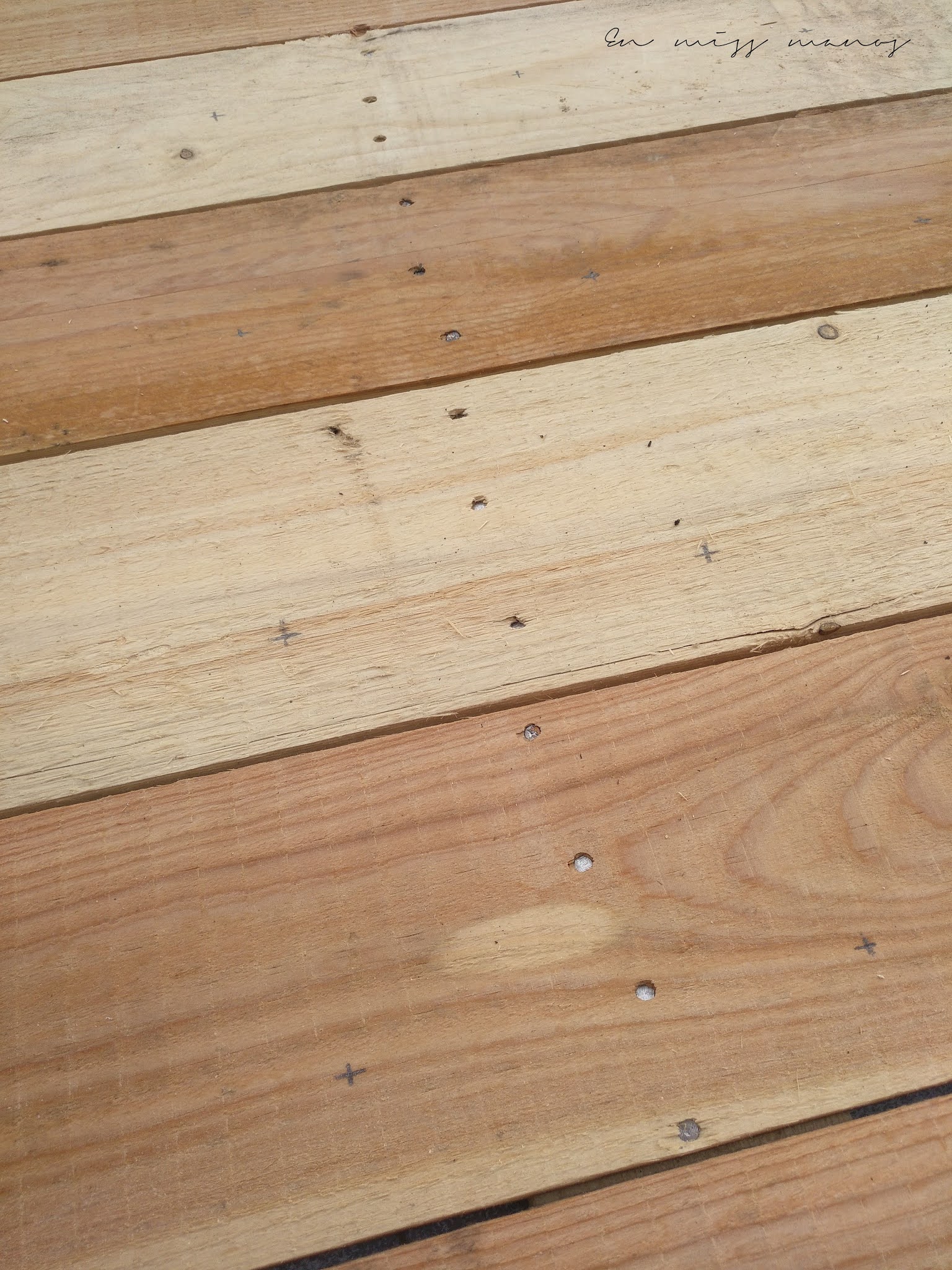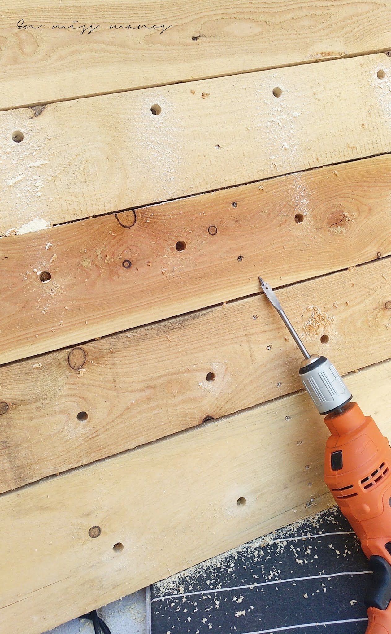 Opté por comprar 3 palés con las lamas juntas, no sabría deciros qué tipo es exactamente, pero así me daba juego a poder hacer la cuadrícula de agujeros para las presas bastante bien, y me ahorraba un dinerillo.