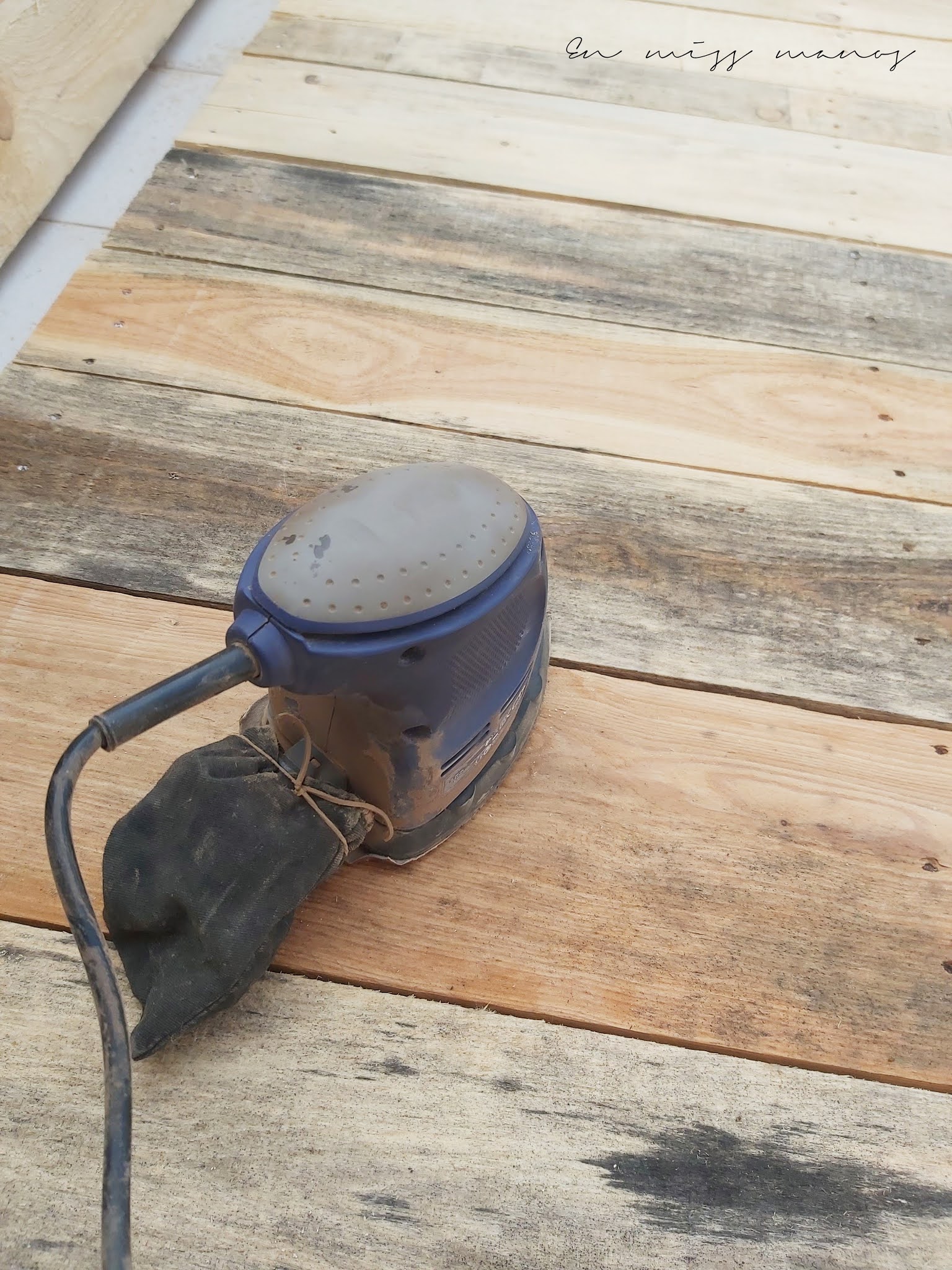 Lijé toda la madera con lijadora, y con papel de lija entre los huecos para quitar cualquier trozo de madera que hubiera levantado.