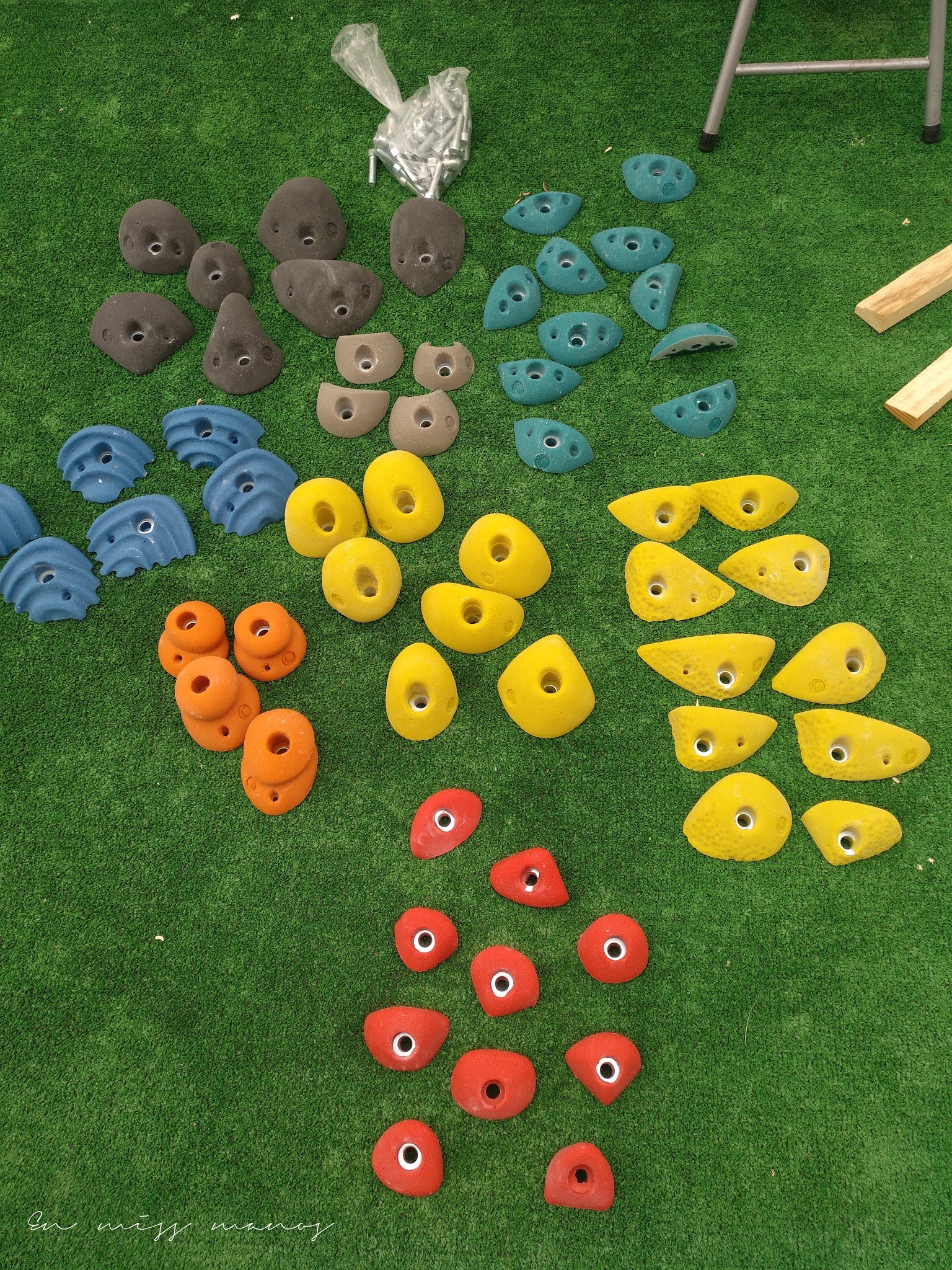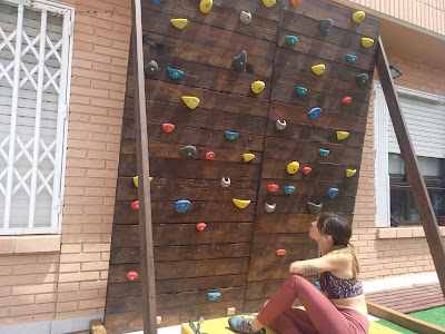 Entre unas cosas y otras, que me costó decidirme y tuve que ir haciéndolo con calma, mi tiempo me llevó. Pero ya está, mi pared para entrenar en casa, finiquitada!