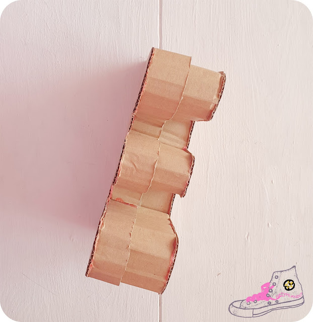 Luego se cortan tiras de cartón, que serán los bordes de la caja. Y se van pegando siguiendo el borde de la letra con la pistola de silicona.