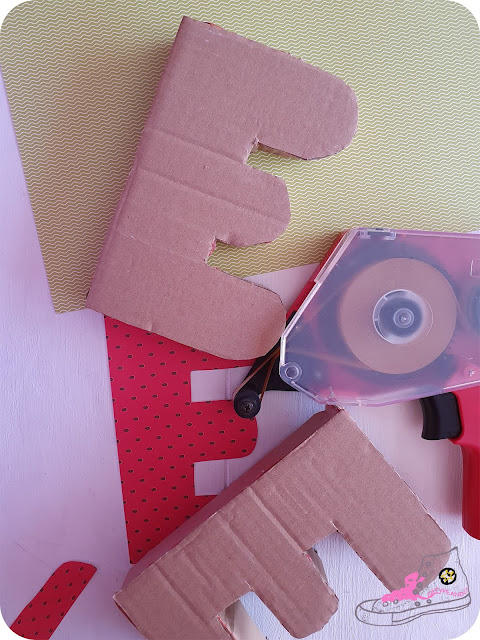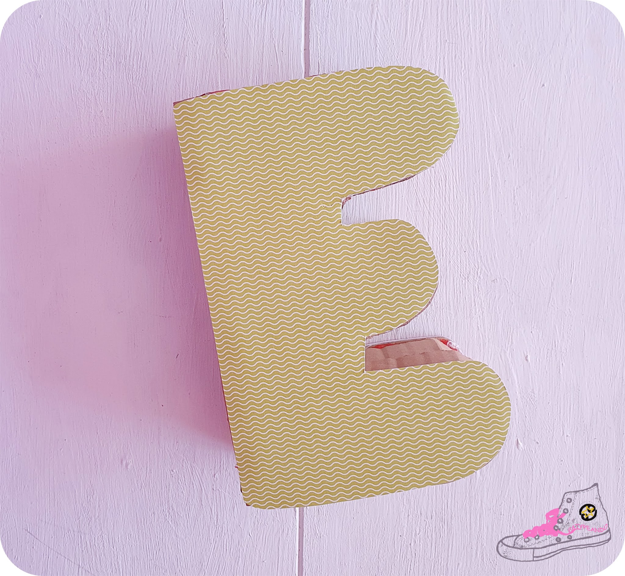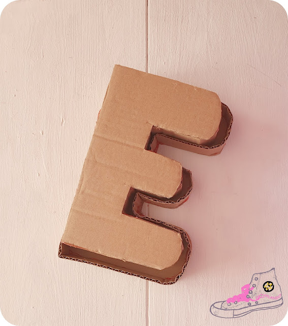 Y lo que hay que hacer es desarmar la caja, y pintar la letra que quieres. Luego se recorta, y se hace otra letra, un poco más grande…