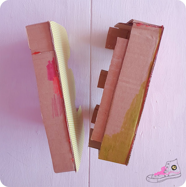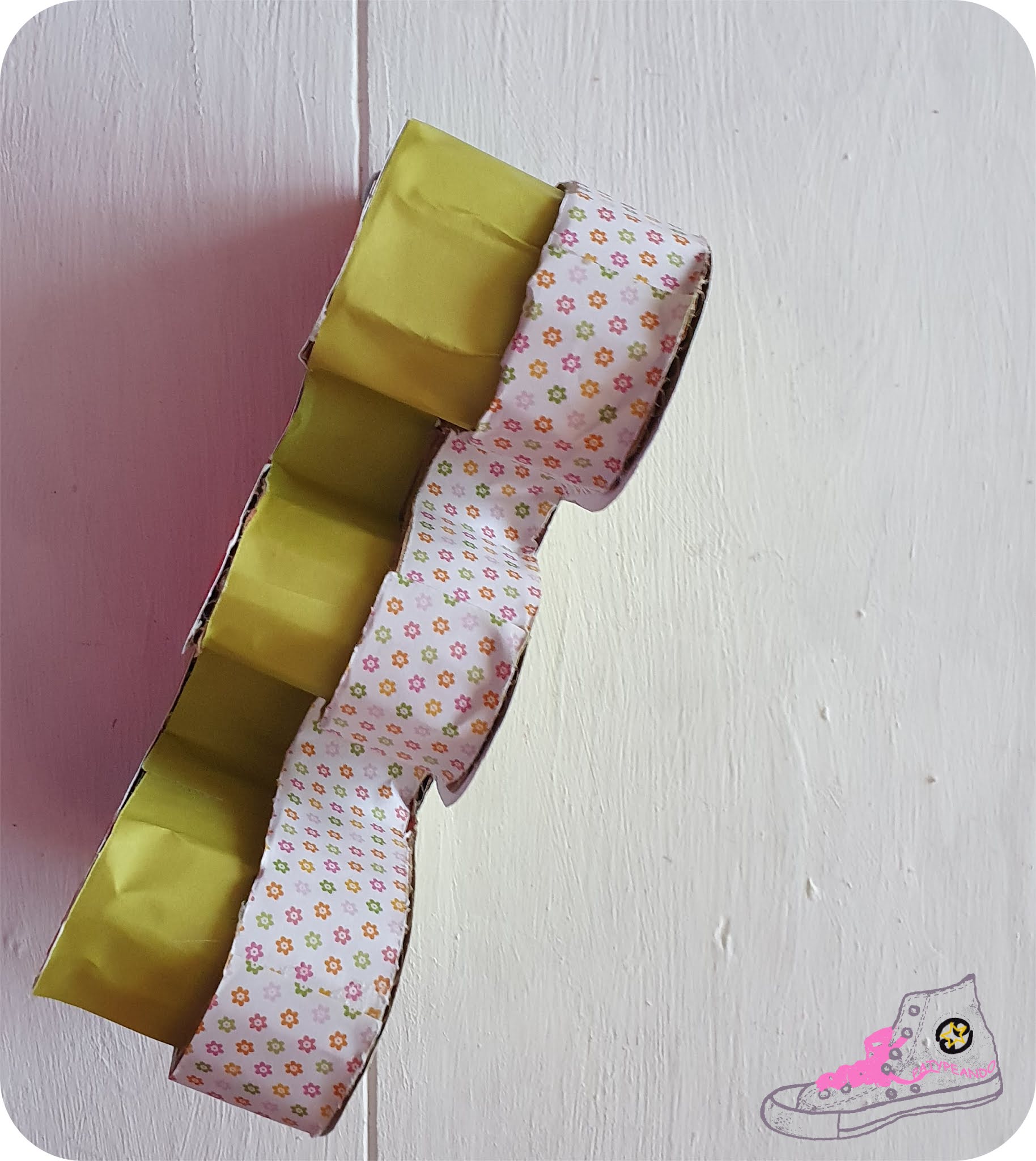 Como no quería que se cerrase del todo, añadí unos cachos de cartón, y así no cierra del todo y queda más ancha…