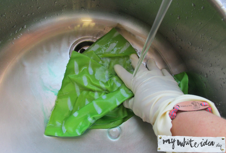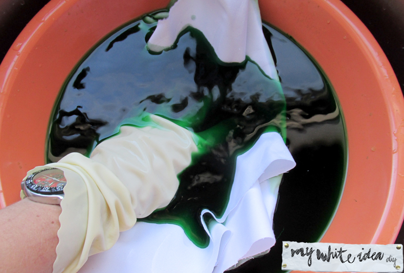 Introducimos la tela con cuidado, dependiendo del tono que deseemos lo dejaremos más o menos tiempo.