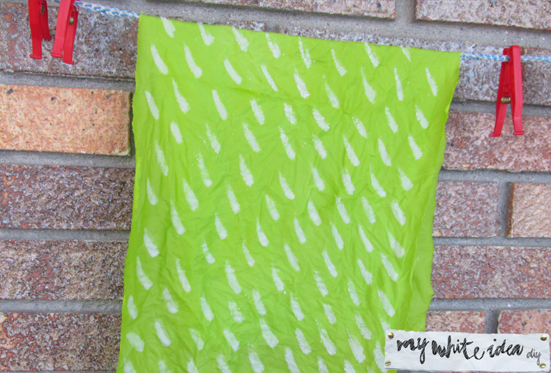 Puedes hacer la forma que prefieras, yo en mi caso hice gotas, puedes poner un nombre, estrellas, etc… aunque si es cierto que hacer formas muy concretas es complicado. Es importante depositar bastante cera, para evitar que se tiña la zona o zonas deseadas.