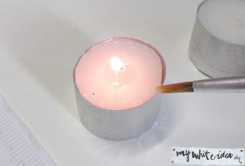 Con Cuidado de no quemar el pincel, lo impregnaremos en cera y rápidamente «pintaremos» nuestra tela