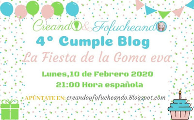 Pero eso no es todo, además nuestra querida Yoli de Creando y fofucheando está de cumpleblog y nos proponía un reto para hacer una manualiadad con goma eva ^^ así que para allá que voy con mi propuesta gatuna a celebrar 4 añitos ya de musas y ganadería^^ jiji
