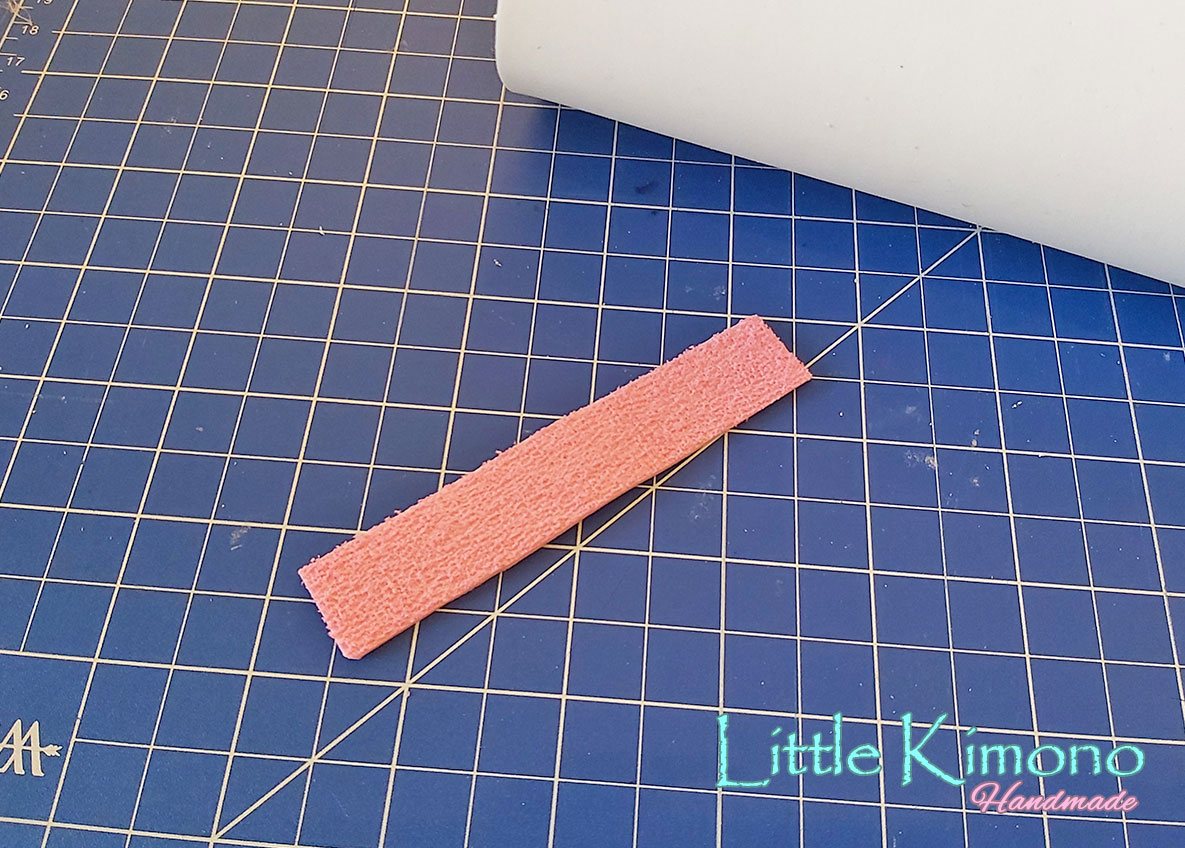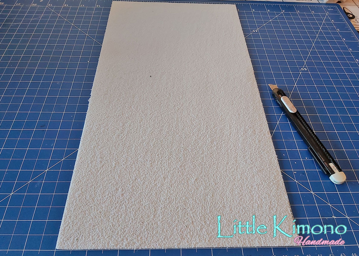 1. Lo primero que vamos a hacer es cortar un rectángulo de goma EVA blanca del ancho de nuestra cremallera (de «metalito al metalito»), en mi caso de 20cm y luego del largo que queramos, yo lo hice de 45cm.