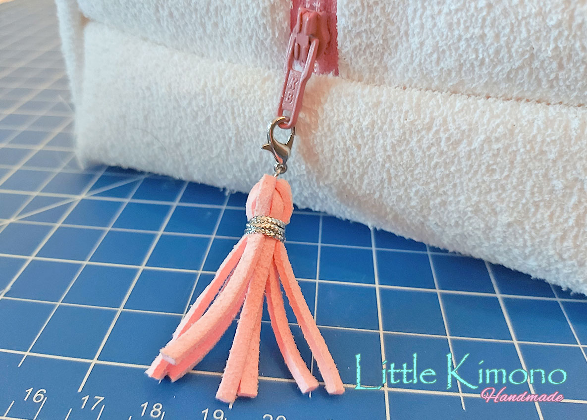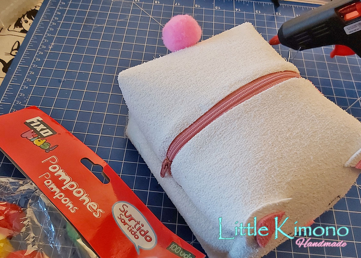 7. Y para darle el toque final hice una borla para decorar la cremallera 😉