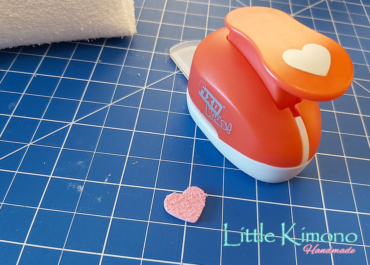 9. Hacemos la carita, para la nariz podemos ayudarnos con la troqueladora de corazón pequeña y para la cara con un rotulador permanente de punta fina.