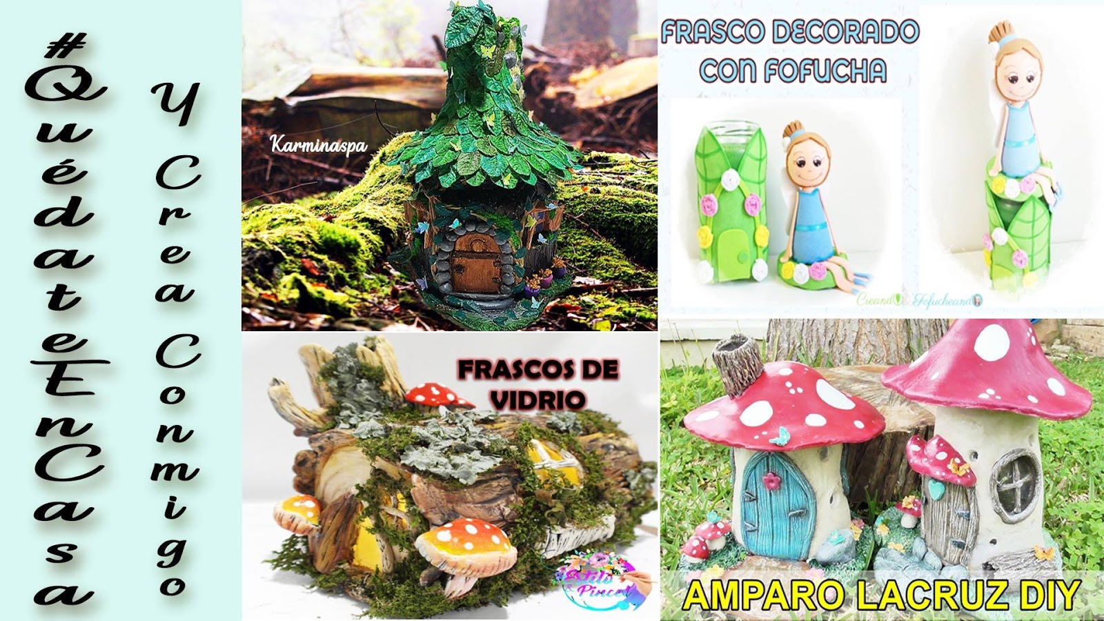 Y aquí todos los trabajos juntos, cuántas casitas bonitas se pueden hacer reciclando frascos.