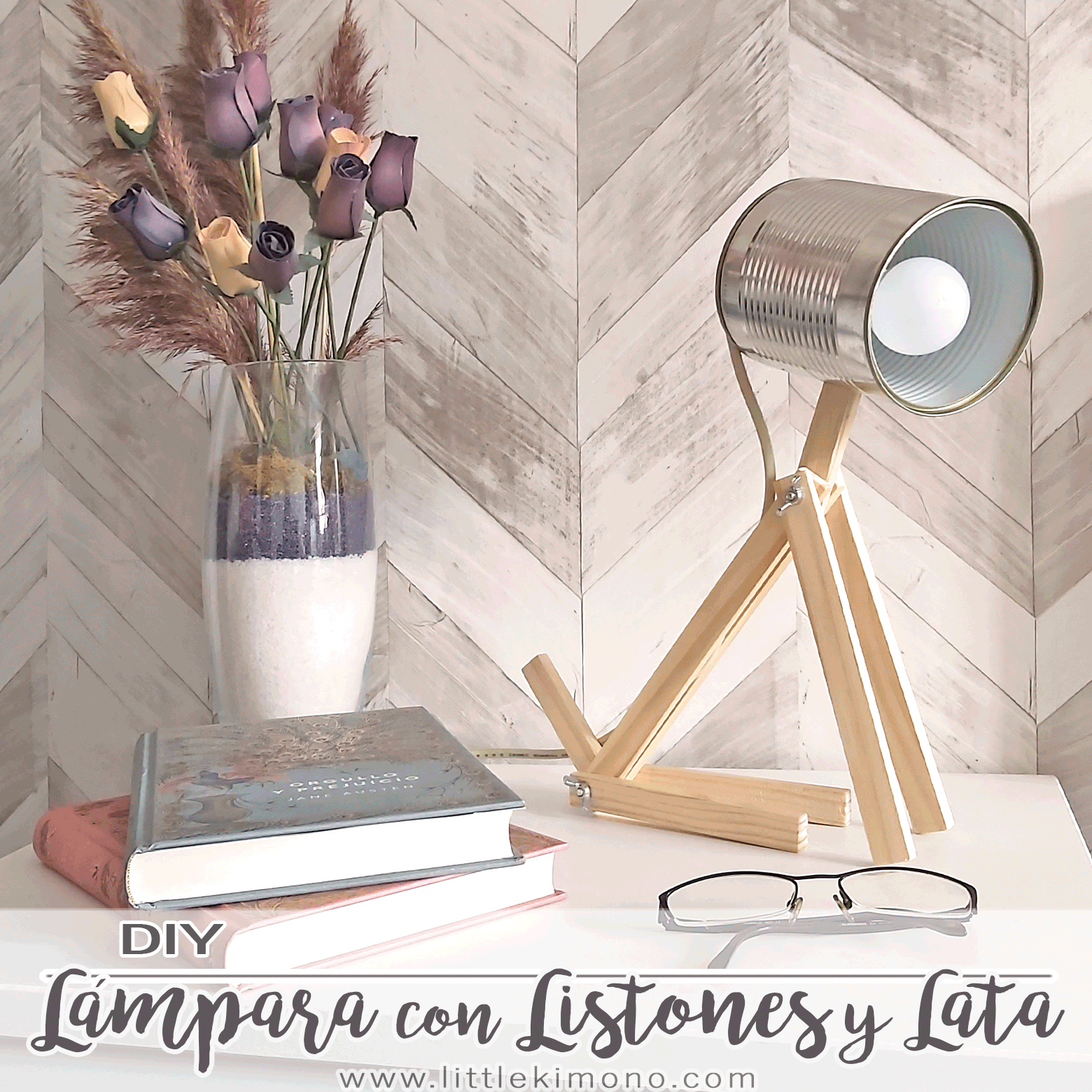 Se trata de una lámpara perrito usando listones de madera y una lata reciclada.