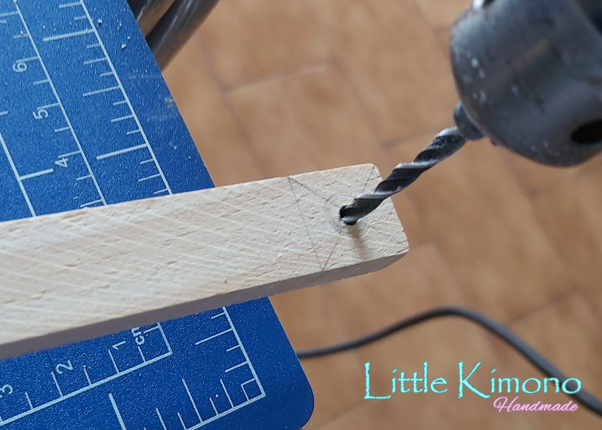 4. Yo he usado el taladro, así que buscamos una broca del tamaño del tornillo para hacer los agujeros, pero si no tenéis taladro podríais hacerlo con un tirafondo más ancho para crear el agujero y luego pasar el tornillo.