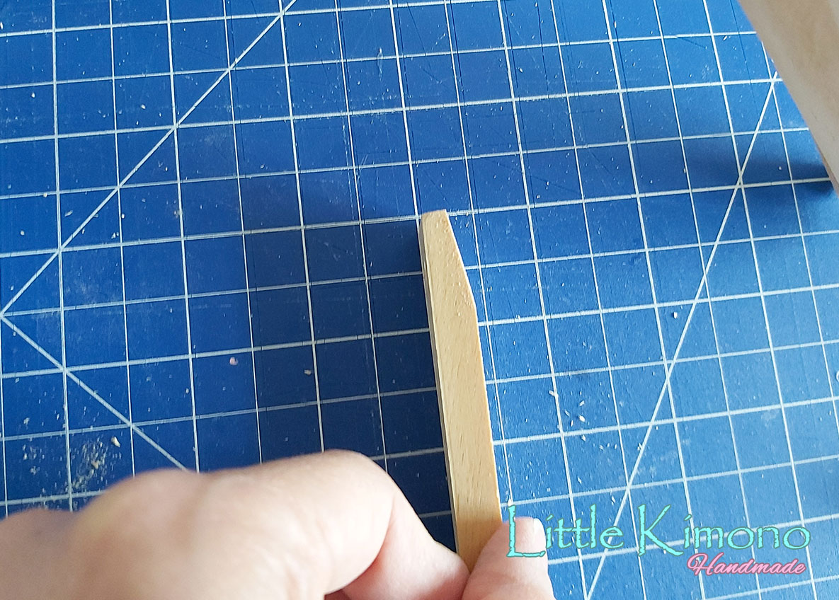 2. Tras el corte notaremos que quedan los extremos un poco astillados, así que pasaremos una lija de grano fino a todos los listones para que queden con una cabado más «suave».