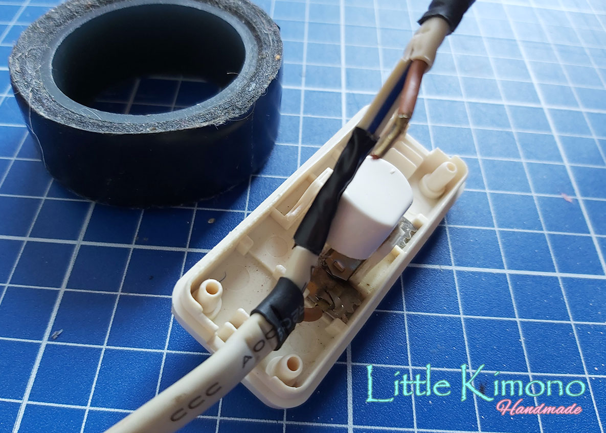 8. Ahora ya podemos hacer el empalme de los cables en el interruptor y tapar con cinta aislante para cerrarlo de nuevo.