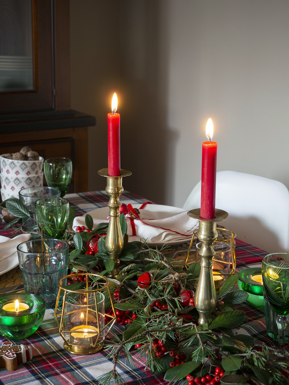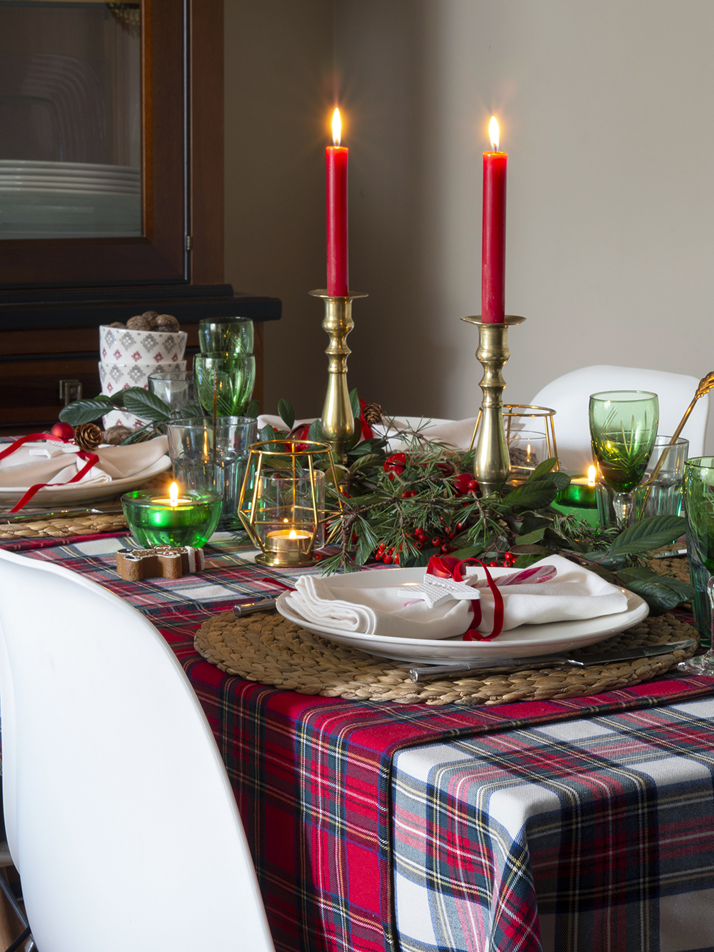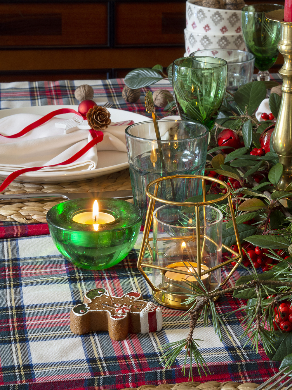 El estampado de cuadros escoceses encaja genial con todos estos elementos ¡Incluirlos en vuestra mesa de navidad para conseguir una decoración hogareña!