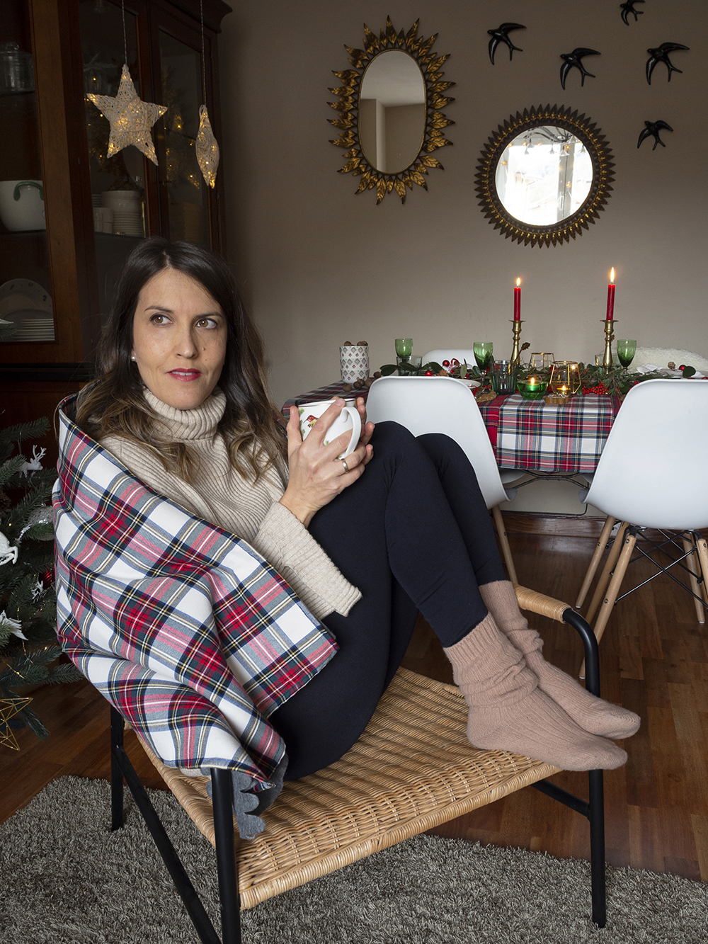 Pero esta vez hemos elegido unos cuadros escoceses con los típicos colores navideños: el rojo y el verde. El estampado tartán en estos colores nos parece parece muy cálido, acogedor… ¡Muy hygge! Y como este año pasaremos la Navidad en la casita del pueblo, hemos querido buscar una estética más tradicional y hogareña.