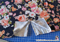 6. Tiramos de las puntas y colocamos los tirantes provisionalmente con alfileres o imperdibles para ver el largo que deseamos de éstos, ajustar el escote y las sisas.