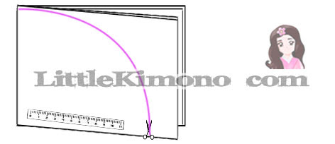 4. Ahora medimos el largo que queremos de frente para el top, y lo medimos en la parte central, trazamos una curva hasta el final del otro extremo y cortamos. Ojo! lo mismo que el paso anterior, cortad de más para que no se os quede corto y luego ya se puede ir ajustando 😉