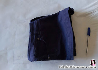 1. Usando un pantalón corto como patrón cortamos la parte trasera y la delantera.