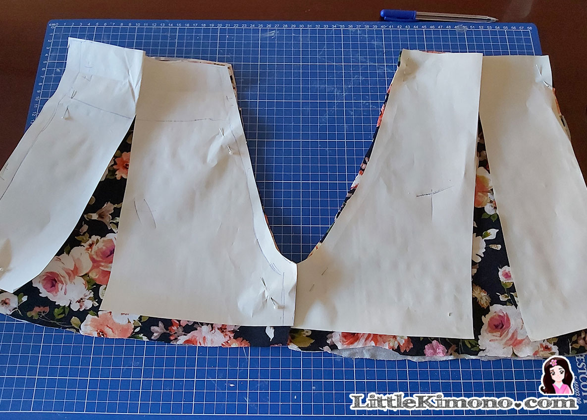 Marqué directamente sobre la tela la forma de la parte de la falda y corté.