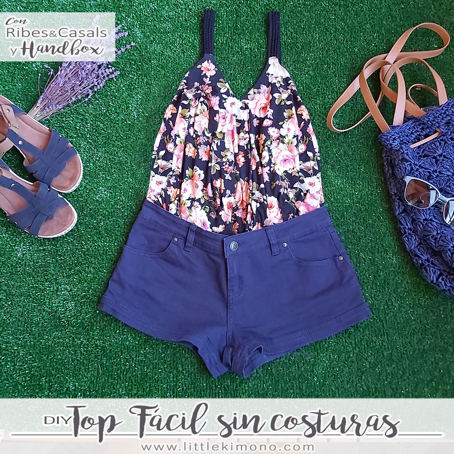 Outfit de Primavera con Ribes y Casals y Handbox Costura fácil: Top fácil sin costuras, pantalón corto sin patrones, vestido fácil