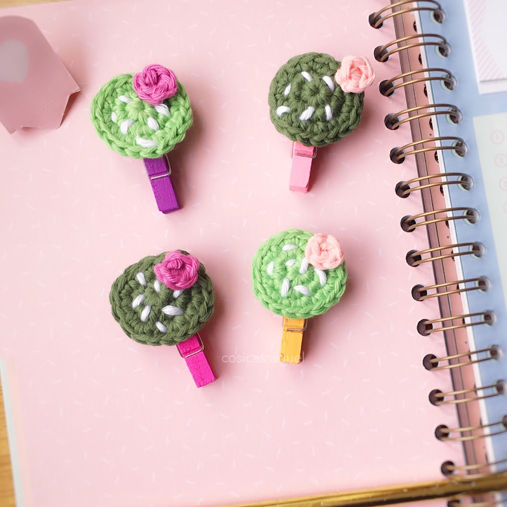 Yo me enamoré desde el principio cuando Jenny compartió su pinza cactus, luego Nati con su pinza sol y así poco a poco he tejido mi colección de pinzas o clips porque he hecho tantas que se me han terminado las pinzas.