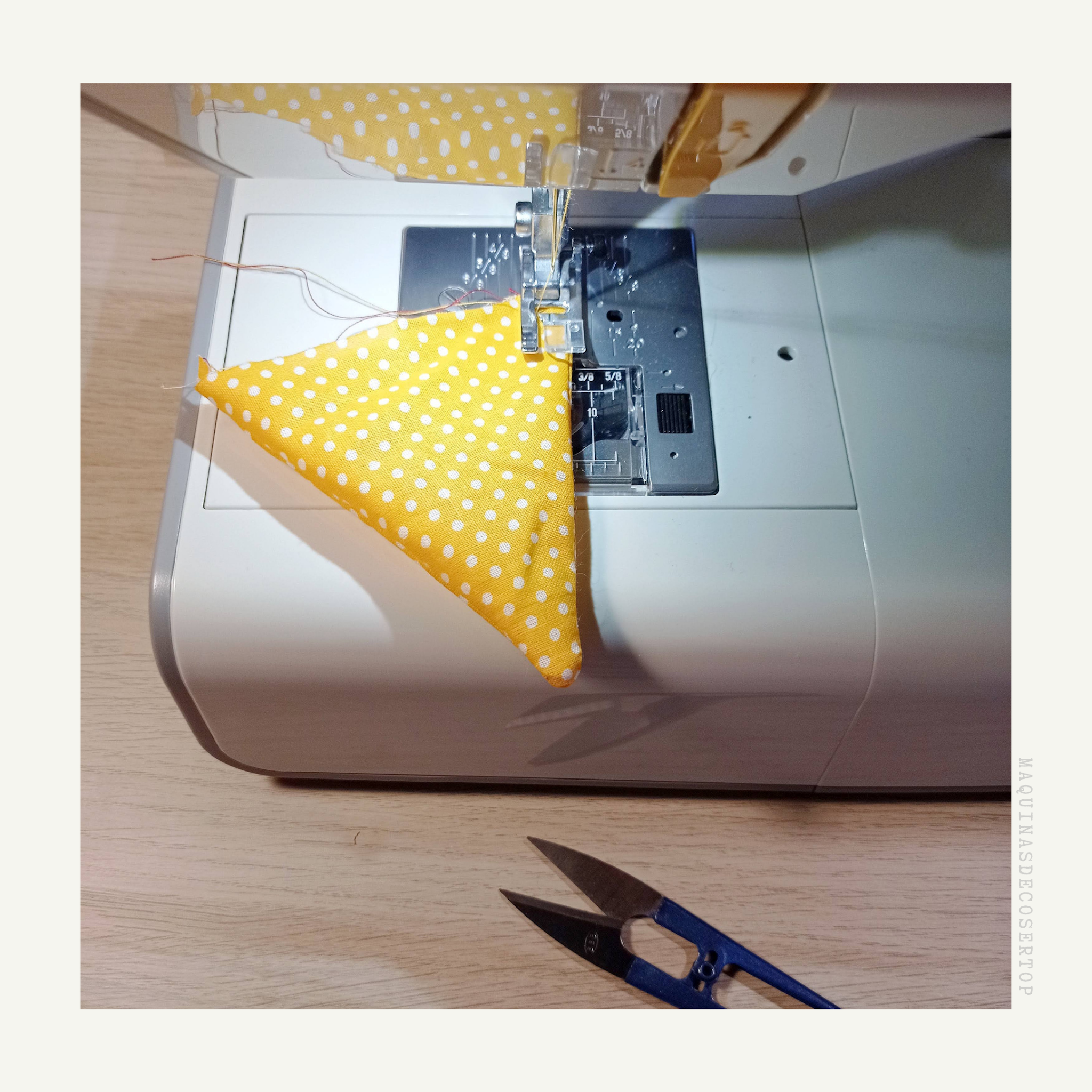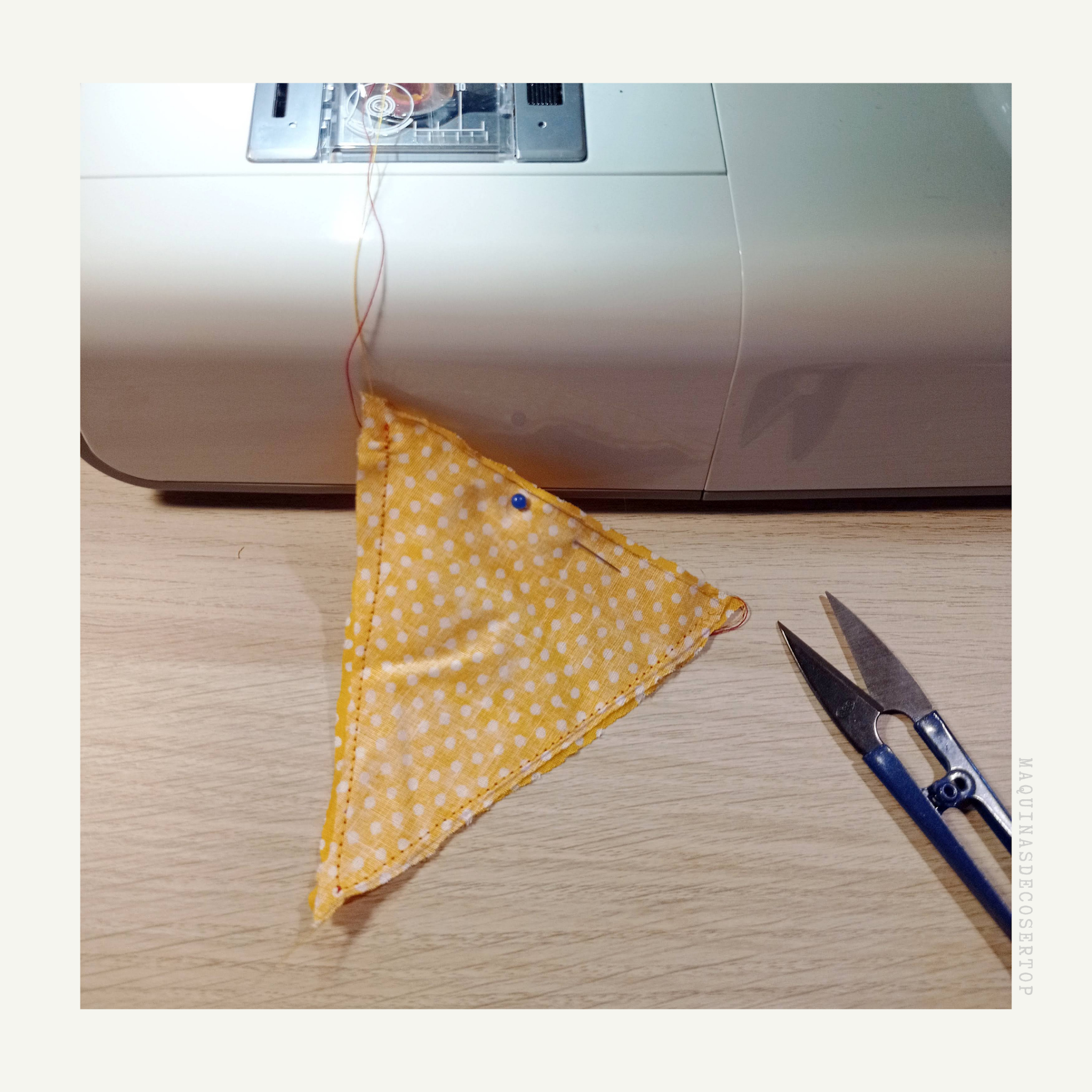 * Luego le das la vuelta, para remarcar el triángulo volviéndolo a coser.