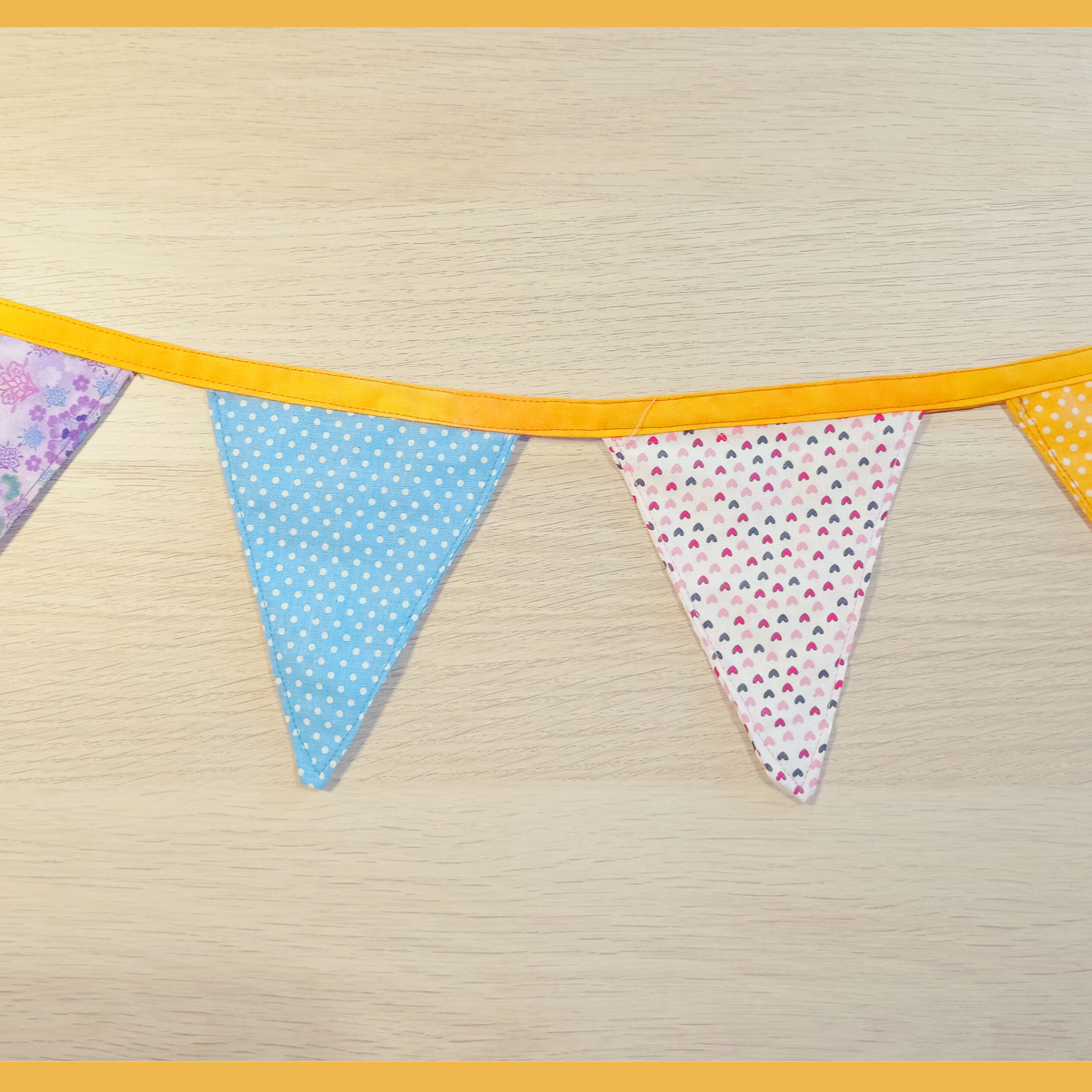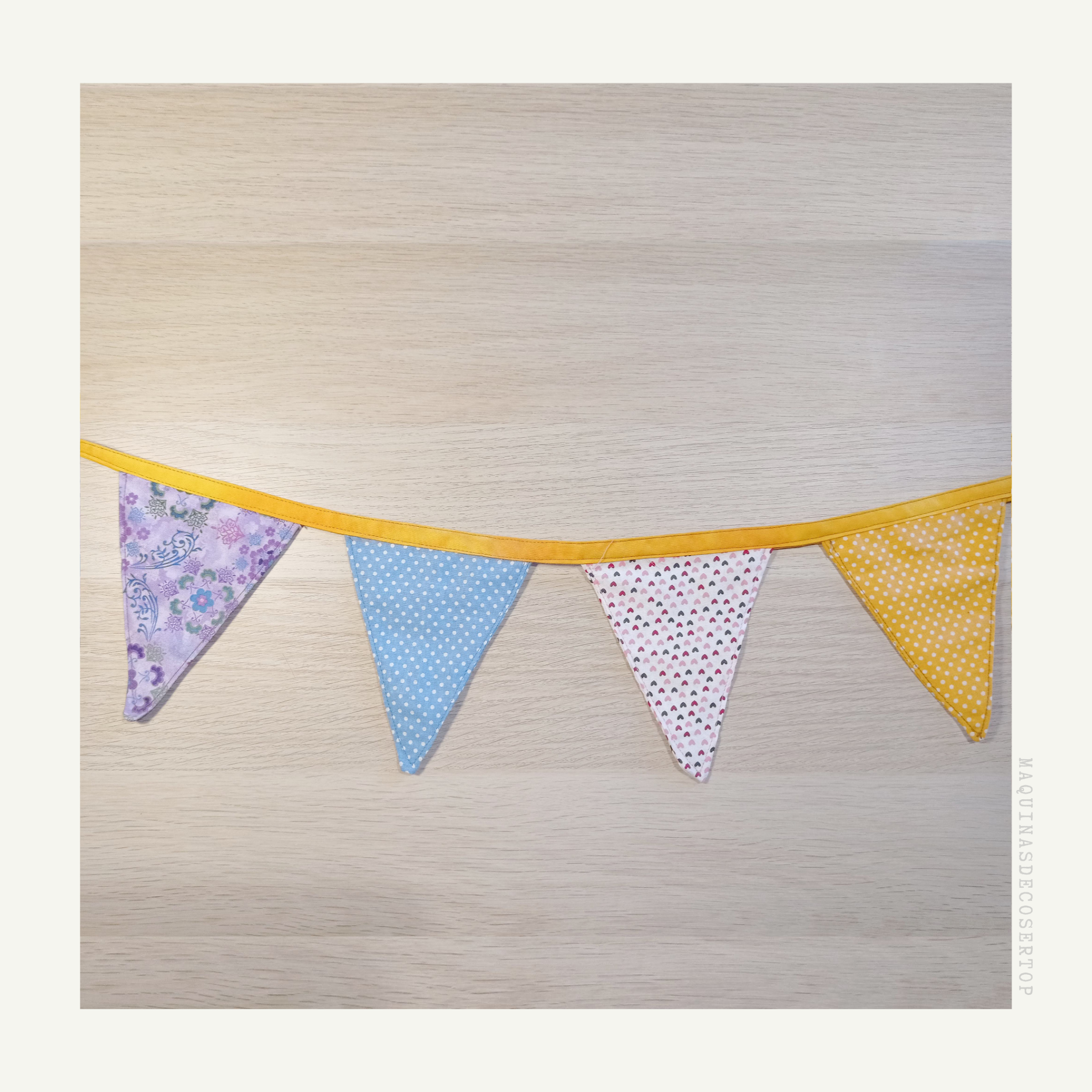 * Finalmente lo juntas en una tira y junto a los otros banderines creados.